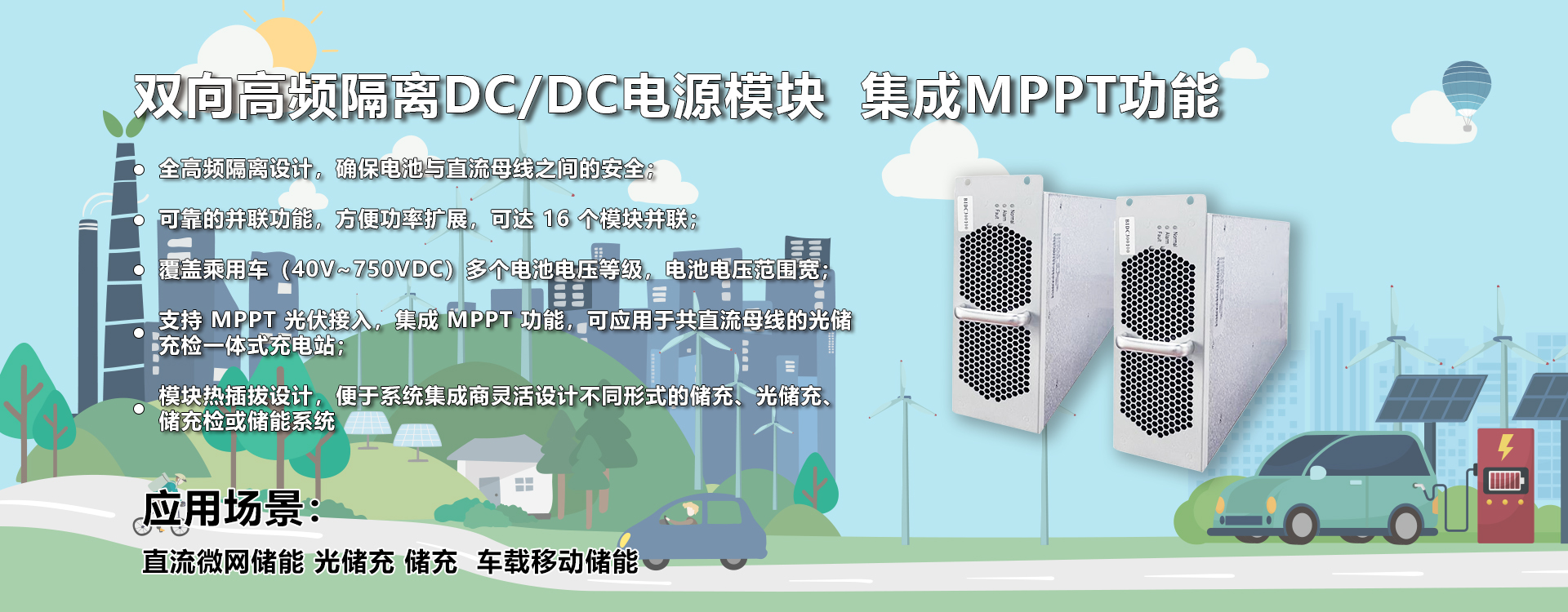 模塊化儲能變流器,用V2G高頻隔離模塊構建而成,兼有高頻隔離與模塊化的優點,機柜兼容IBG75027與IBG30050模塊,根據需求靈活配置成不同功率等級與不同電池電壓的儲能變流器。